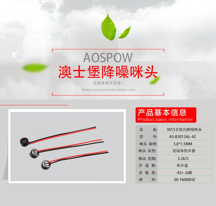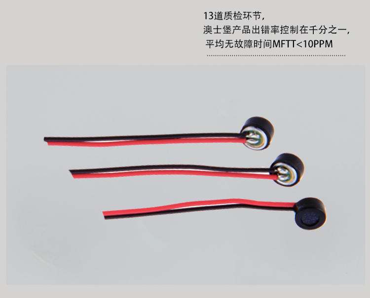 澳士堡咪頭工廠供應(yīng)藍(lán)牙耳機(jī)用咪頭,3mm全指向小咪芯,3015焊線咪頭,雙電容抗干擾采用韓國(guó)進(jìn)口管芯定制生產(chǎn),3mm小體積咪芯適用于藍(lán)牙耳機(jī)等產(chǎn)品使用。