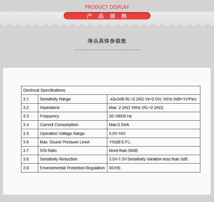 類型:駐極體傳聲器(咪頭)